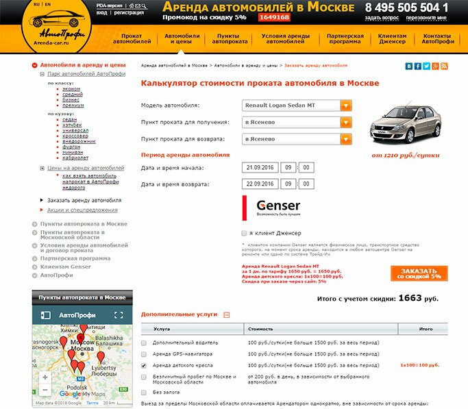 В АрендаАвто-нрф предлагается прокат автомобиля недорого.«Рено Логан» на сутки обошелся нам в 1 520 рублей (без учета скидки для клиента Genser), а это очень дешево для авто напрокат в Наро-Фоминске.